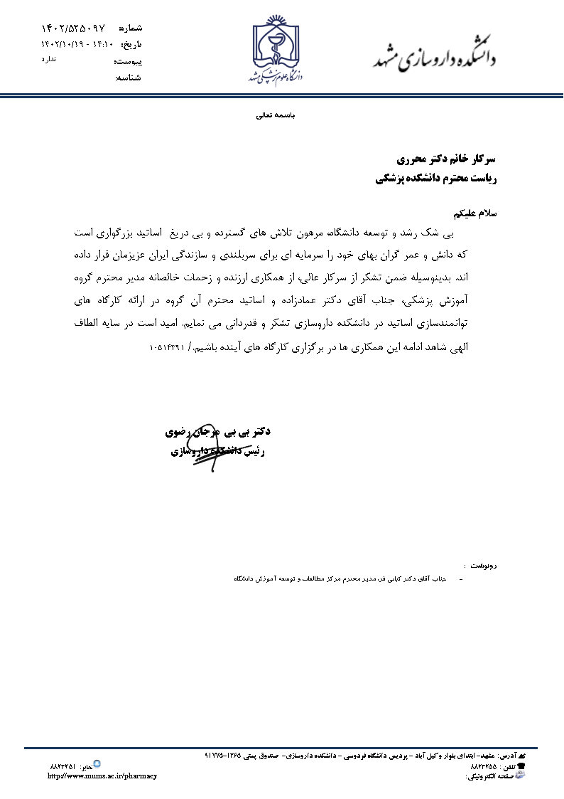 اکبری فارمد سمیه اخبار بازدید: 79 امتیاز: ( 0 Rating ) تقدیر و تشکر رئیس محترم دانشکده داروسازی از گروه آموزش پزشکی امتیاز کاربران لطفا رای دهید رای 1 رای 2 رای 3 رای 4 رای 5 تقدیر و تشکر رئیس محترم دانشکده داروسازی از مدیر و اعضای محترم گروه آموزش پزشکی بابت برگزاری کارگاه های توانمندسازی اساتید در دانشکده داروسازی قبلی بعدی