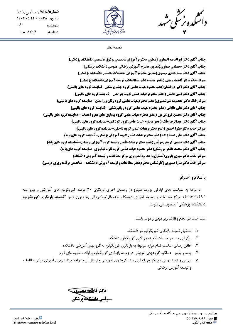 اکبری فارمد سمیه اخبار بازدید: 70 امتیاز: ( 0 Rating ) انتصاب امتیاز کاربران لطفا رای دهید رای 1 رای 2 رای 3 رای 4 رای 5 انتصاب سرکارخانم دکتر مهری یاوری و جناب آقایان دکتر علی عمادزاده و دکتر حسین کریمی مونقی به عنوان عضو کمیته بازنگری کوریکولوم دانشکده پزشکی قبلی بعدی